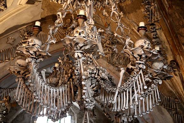 世界六大詭異之地, 塞德萊茨藏骨堂(捷克語:Kostnice v Sedlci),中文俗稱人骨教堂,是位於捷克庫特納霍拉郊區諸聖公墓(Hřbitovní kostel Všech Svatých)中的一座小型羅馬天主教小聖堂,是世界文化遺產「歷史城區及聖巴巴拉教堂和塞德萊茨的聖母大教堂」的一部分。這座小聖堂中收藏有四萬到七萬人的骨架,具體數字並沒有統計。這些人骨以裝飾品、家具的形式陳列在這裡。它是捷克共和國遊客參觀次數最多的景點之一。這些人骨多來自14世紀黑死病和15世紀初胡斯戰爭殺死的當地人,他們原先被葬在13世紀末建造的公墓里,這座哥德式小聖堂1400年左右建成時掘開了許多墓葬,墓葬中的遺骨就被收藏於其中,因此變成了藏骨堂。一名曾到耶路撒冷朝聖的修道院院長把帶回來的泥土撒在地上,自此,名門望族都以身後能葬於此地為榮。14世紀的一場黑死病和15世紀的戰爭,令這塊3500平方米的空地上,竟出現了3萬多個墳墓!16世紀時有教士開始把骸骨搬進教堂,並堆成金字塔狀,由於骸骨實在太多,後來有人索性把骨頭充當裝飾素材 ,造就了人骨教堂的誕生。教堂裡的天花板、牆壁上盡是人骨串成的裝飾品。據統計,這些飾品大約用掉一萬俱屍骨。神學家表示,天主教視死亡為神聖的事,死後將屍身獻給上帝,象徵無上的讚美,所以“人骨裝飾品”不值得大驚小怪。人骨教堂很小,兩三分鐘已可走完。但那別出心裁的人骨藝術,卻不由得讓人駐足細賞。只見4萬副經過消毒和篩選的骨頭,大小相同,被細緻地用來砌成燭台、祭壇、聖杯、門楣、拱門、吊飾甚至十字架。最令人嘆為觀止的,是教堂正中央那盞由人體各部分的骨骼造成的“人骨吊燈”——以腿骨組成主架,下顎骨串成掛簾,主架又分成8個腿骨燈架,撐著一塊塊排成圓形的盆骨,上面又各自端著一顆充當燭台的頭顱,外形獨特,又彷彿附著死者的靈魂,邪惡詭異中帶著點懾人心髓的華麗。