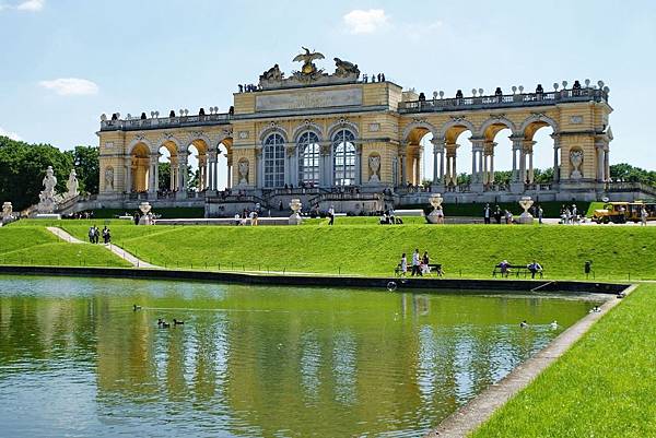 美泉宮(德語:Schloss Schönbrunn,又音譯作熊布朗宮)是座落在奧地利首都維也納西南部的巴洛克藝術建築,曾是神聖羅馬帝國、奧地利帝國、奧匈帝國和哈布斯堡王朝家族的皇宮,如今是維也納最負盛名的旅遊景點。美泉宮的名字來源於神聖羅馬帝國皇帝馬蒂亞斯(1612年至1619年在位),傳說1612年他狩獵至位於Meidling和Hietzing之間的凱特堡,飲用此處泉水,清爽甘冽,遂命名此泉為「美泉」,此後「美泉」成為這一地區的名稱。1743年,奧地利女皇瑪麗亞·特蕾莎下令在此營建氣勢磅礴的美泉宮和巴洛克式花園,總面積2.6萬平方米,僅次於法國的凡爾賽宮。美泉宮設計時的規模和豪華程度與凡爾賽宮相比有過之而無不及,但由於財力有限,原設計並未能如願。現在的美泉宮共有1441間房間,其中45間對外開放供參觀。整個宮殿是巴洛克風格的,但是其中有44個房間是洛可可風格的。美泉宮雖不能和凡爾賽宮相比,但依舊顯示出了哈布斯堡王朝家族的氣派。宮殿長廊牆壁上是哈布斯堡皇族歷代皇帝的肖像畫以及瑪麗亞·特蕾莎女皇16個兒女的肖像。後來隨法國國王路易十六同上斷頭台的法國王后瑪麗·安托瓦奈特少女時代的畫像也在其中。美泉宮背面的皇家花園是一座典型的法國式園林,碩大的花壇兩邊種植著修剪整齊的綠樹牆,綠樹牆內是44座希臘神話故事中的人物。園林的盡頭是一座「海神泉」(Neptunbrunnen),向東便是皇宮名稱由來但卻又不很起眼的「美泉」,美泉的正對面是一片人造的羅馬廢墟(Römische Ruine)和一塊方尖碑。美泉宮的最高點是凱旋門(Gloriette),海神泉的西側是動物園(Tierpark)和熱帶植物溫室(Palmenhaus)。