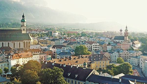 Hall in Tirol,是靠近因斯布魯克因河邊的小鎮,依山而建,最高點海拔有500多米。小鎮歷史悠久,建築古樸,教堂很有特色。小鎮的街道崎嶇蜿蜒,沿街的小舖做著本地人的生意。這是一個曾經倚靠鹽礦和鑄幣積累起來大量財富而建成的古城,至今保護完好,穿行在這裡的大街小巷會讓你心馳神往,著迷其間。