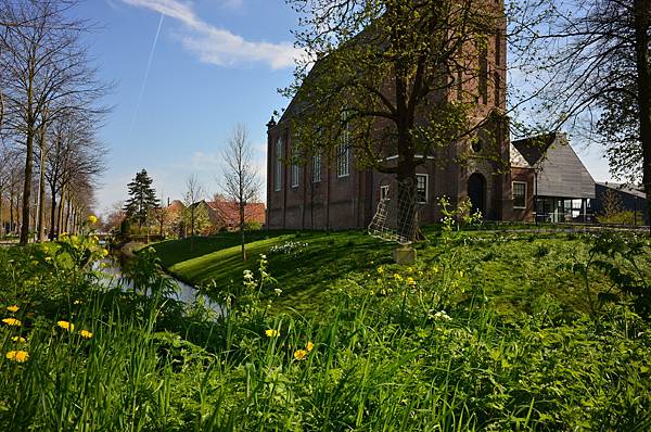 羊角村又有「綠色威尼斯」之稱〈也有人稱「荷蘭威尼斯」〉,因為水面映射的都是一幢幢綠色小屋的倒影。這裡房子的屋頂都是由蘆葦編成,這可是比任何建材來的耐用,使用年數少說40年以上,而且冬暖夏涼、防雨耐曬。據說從前蘆葦是窮苦人家買不起磚瓦而用來的替代品,現在的價格蘆葦可是有錢人家才買的起的建材,價格為磚瓦的幾十倍。而這裡的地價也早已水漲船高,所以大部分的居民大多是醫生、律師等高收入的職業,這與從前苦哈哈的困苦情況似乎形成一種對比的時空交錯。
